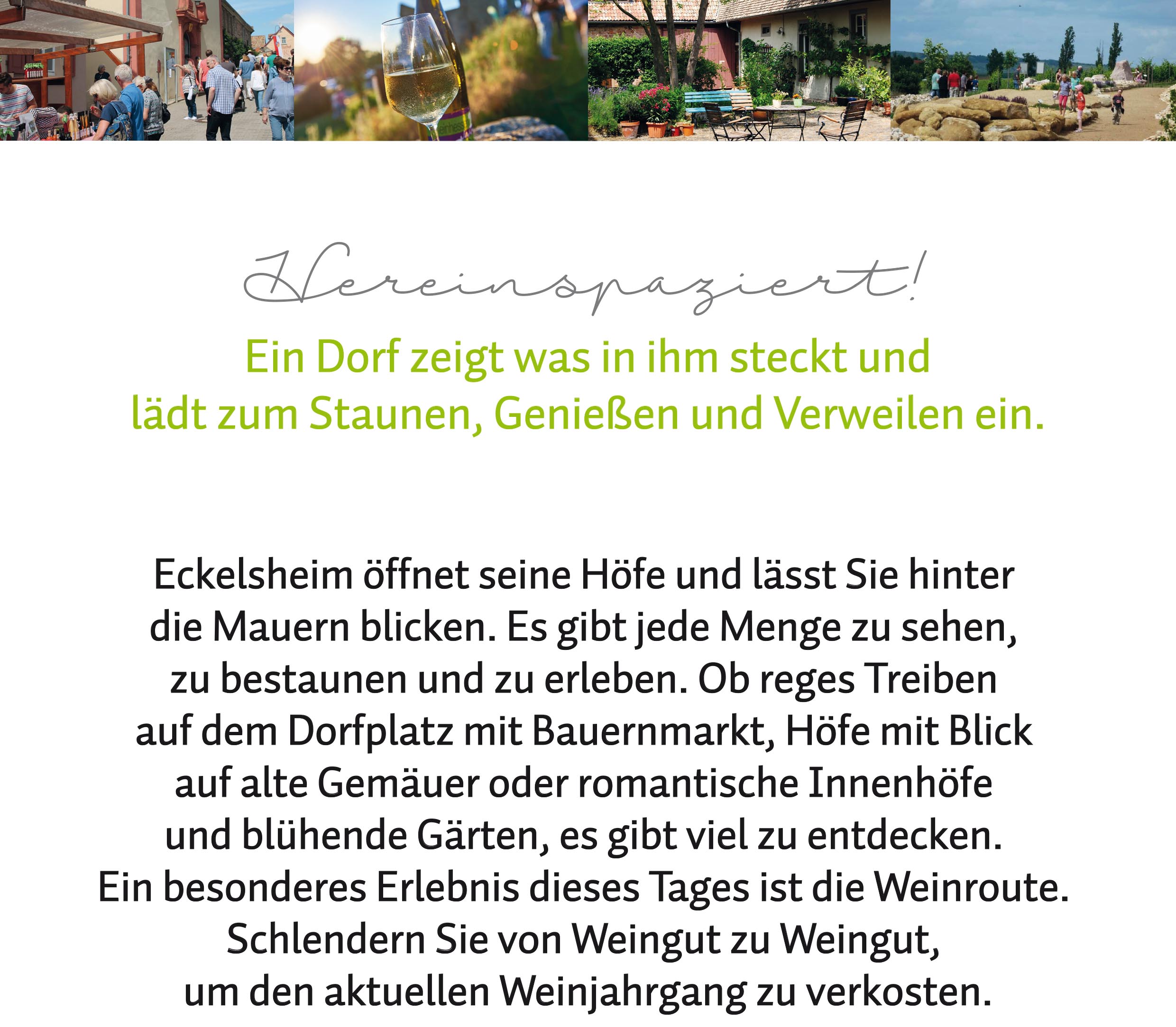 Unser idyllisches Heimatdorf Eckelsheim zeigt was in ihm steckt und lädt zum Staunen, Genießen und Verweilen ein.